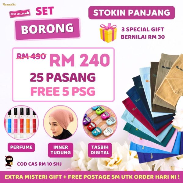 Set Borong Stokin Panjang (25+5 Pasang) quantity