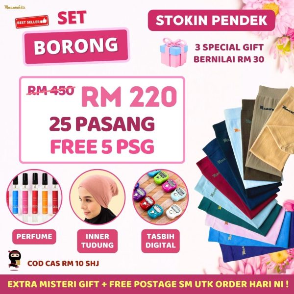 Set Borong Stokin Pendek (25+5 Pasang) quantity